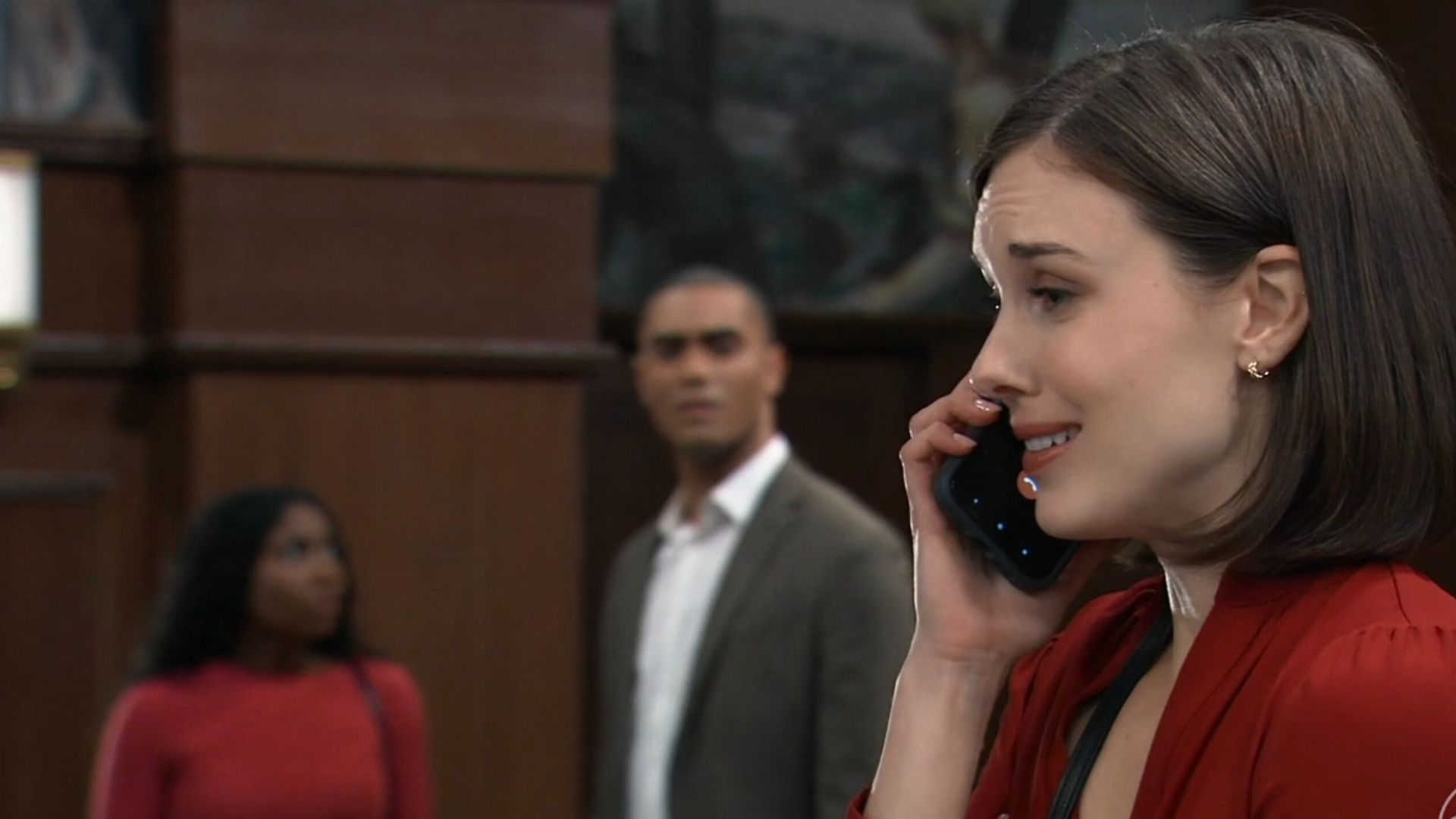 Dante came to the courtroom and got updated by Kristina. Michael came into the hall and joined their conversation. Dante asked if Drew was setting him up for a crime he didn’t commit.